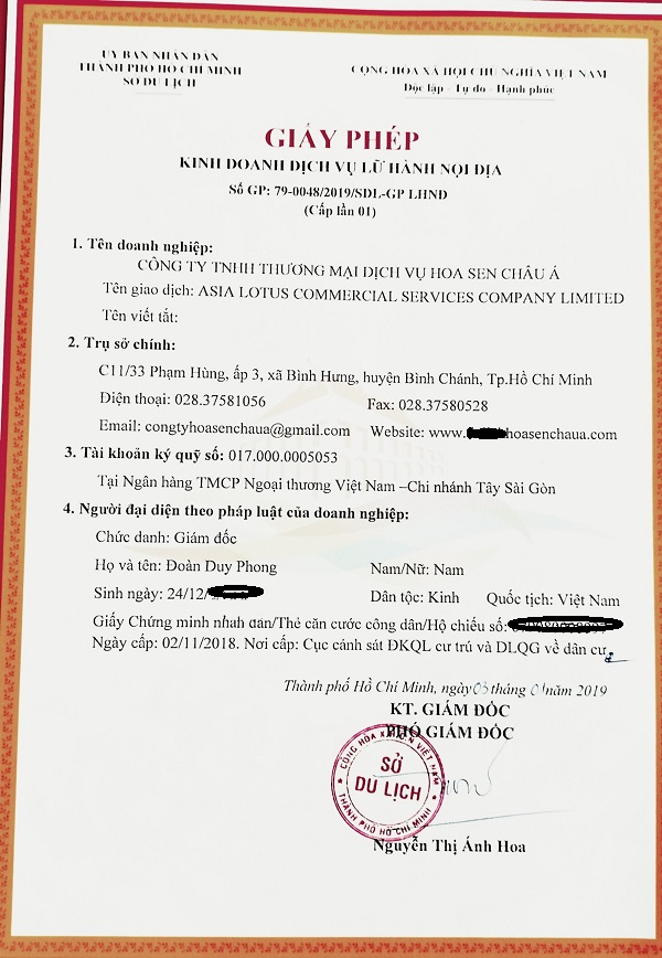 Giấy phép kinh doanh hoạt động Lữ Hành Du Lịch