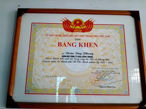 Bằng khen của Ủy Ban TRung Ương Hội Liên hiệp Thanh Niên Việt nam
