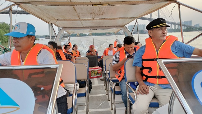 Du khách đi tàu ngắm nhìn khung cảnh tuyệt vời trên sông!