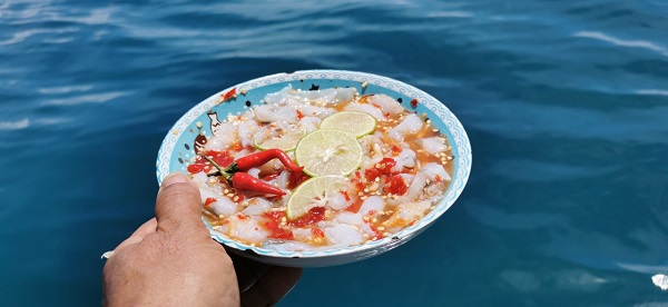 Du khách thưởng thức hải sản tươi sống chỉ có trong hành trình du thuyền Nha Trang
