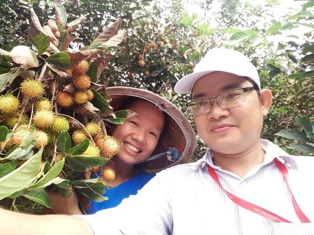 Du khách trải nghiệm tour du lịch miệt vườn thưởng thức trái cây tại vườn Chôm Chôm
