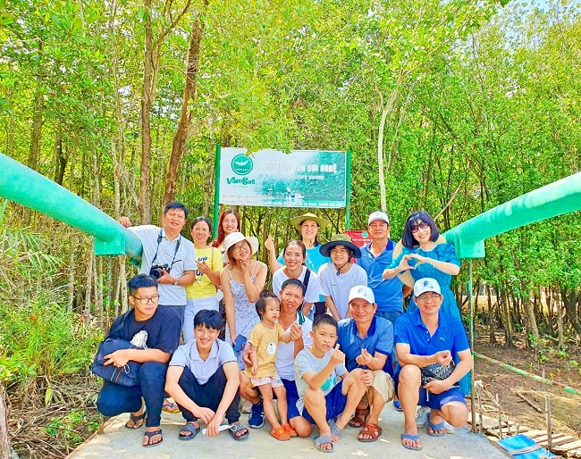 Du khách chụp hình kĩ nioe65m chuyến đi Tour du ngoạn cano Cần Giờ
