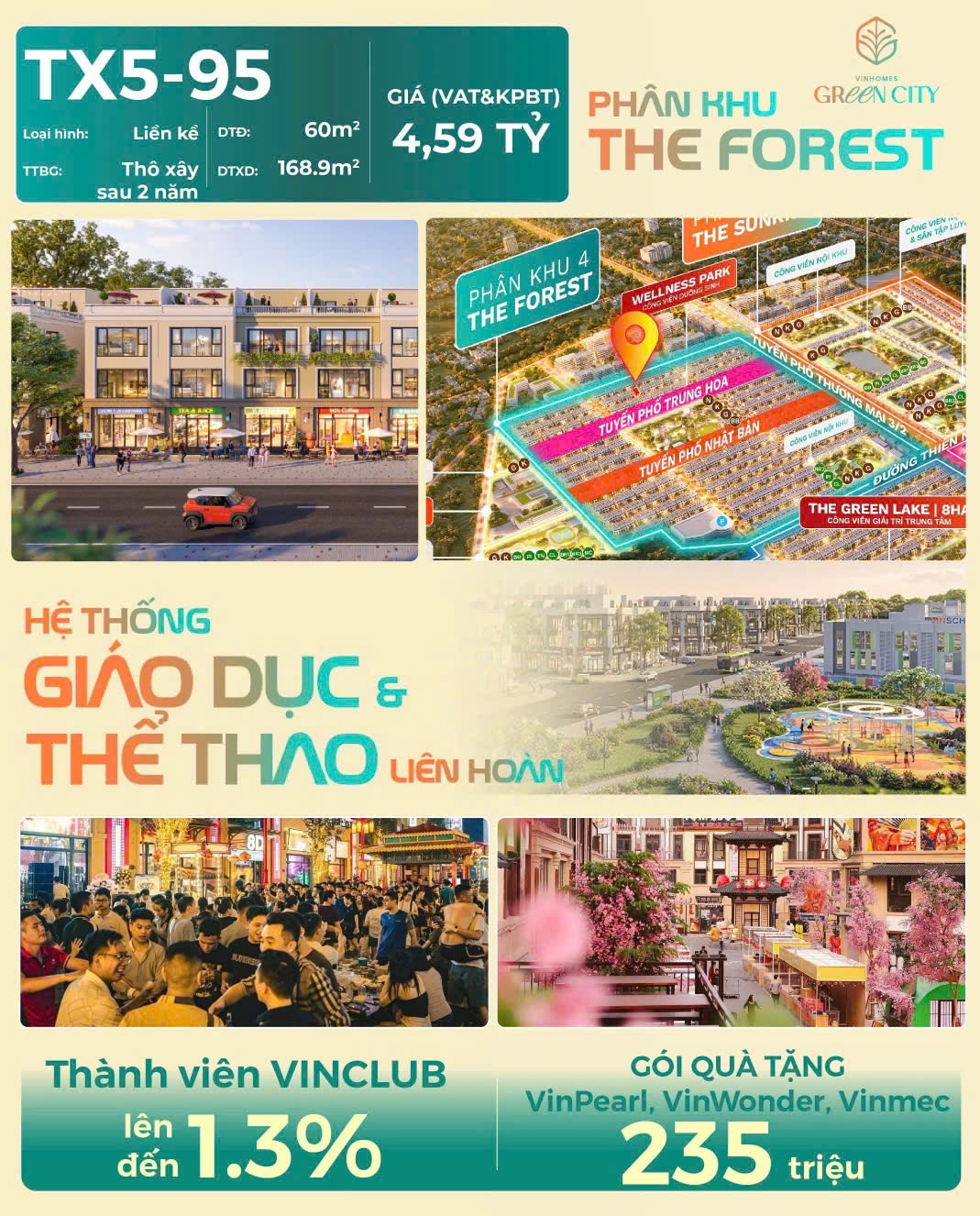 Thông tin về Vinhomes Green City được đánh giá là một khu đô thị đáng sống, nổi bật với không gian xanh, tiện ích hiện đại và vị trí chiến lược. Dự án mang đến một môi trường sống lý tưởng, kết hợp hài hòa giữa thiên nhiên và tiện nghi đô thị, đồng thời hứa hẹn tiềm năng phát triển kinh tế và gia tăng giá trị bất động sản.