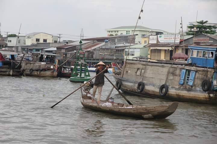Đhác ngoài chợ nổi Cái Răng. Đây chắc chắn không phải khu chợ bình thường như những khu chợ bạn từng đến. Nó là chợ nổi, chỉ nghe tên thôi thì hẳn bạn cũng mường tượng ra được hình ảnh khu chợ nổi bồng bềnh trên nước. Muốn tham quan chợ, thay vì đi bộ bạn sẽ phải chèo thuyền.