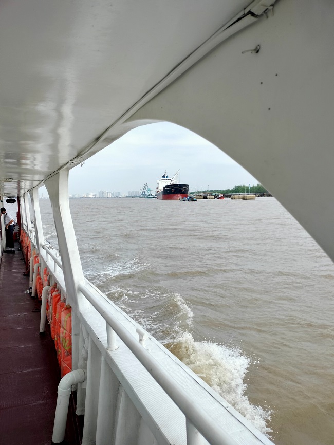 Du khách checkin cầu Phú Mỹ trên Boong tàu