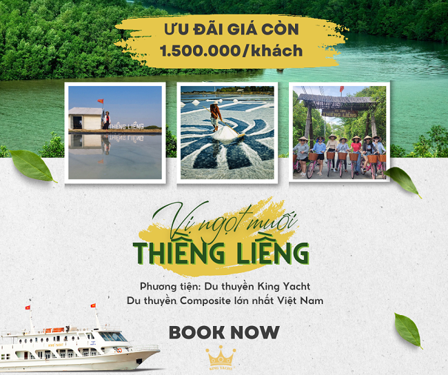 Du thuyền King Yacht là một trong những du thuyền nổi bật tại TP.HCM, được biết đến với thiết kế sang trọng và dịch vụ chất lượng cao, mang đến trải nghiệm độc đáo cho du khách trên các hành trình đường sông. Một trong những chuyến đi hấp dẫn nhất của King Yacht là tour du ngoạn đến đảo Thiềng Liềng, thuộc xã đảo Thạnh An, huyện Cần Giờ – một ấp đảo yên bình cách trung tâm TP.HCM khoảng 70 km.