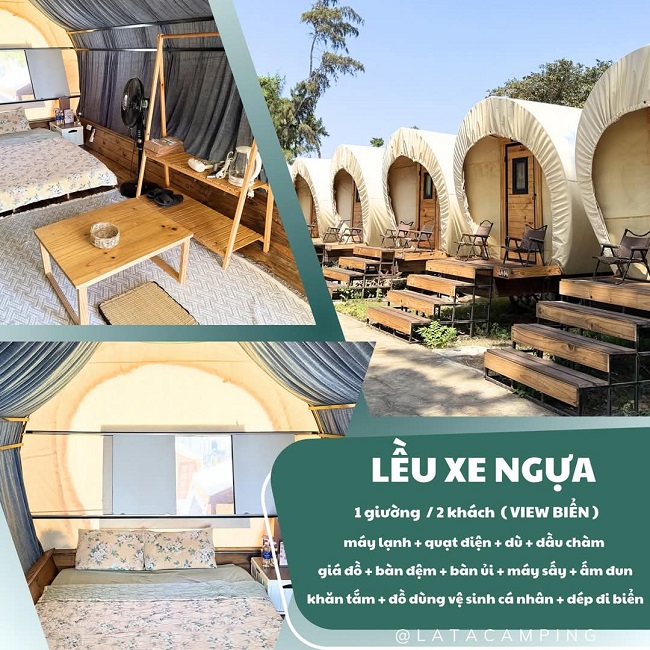 Đa dạng loại hình lưu trú: Lata Camping cung cấp nhiều lựa chọn lưu trú khác nhau, từ lều trại truyền thống đến lều Mông Cổ, phòng xe ngựa và nhà gỗ. Bạn có thể lựa chọn loại hình phù hợp với sở thích và nhu cầu của mình.