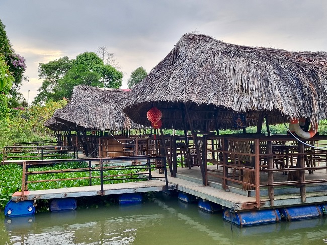 Các công trình nhà tre xanh, nhà hàng nổi trên mặt nước.
