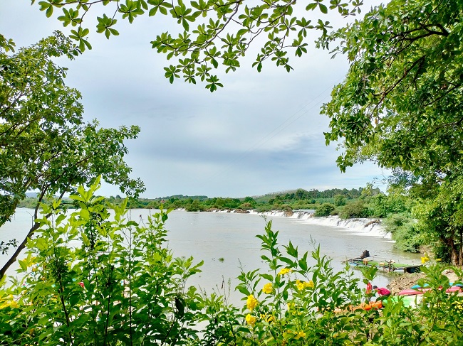 Xung quanh là rừng nguyên sinh, vườn điều, tiêu, cà phê, mang đến không khí trong lành.