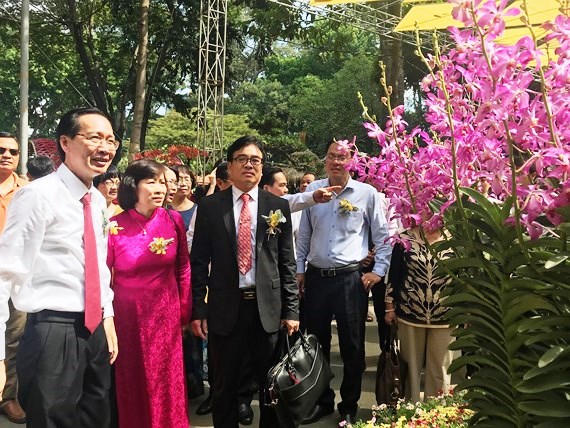 Đồng chí Lê Thanh Liêm, Phó Chủ tịch Thường trực UBND TPHCM cùng du khách tham quan tại Festival Hoa Lan 2019